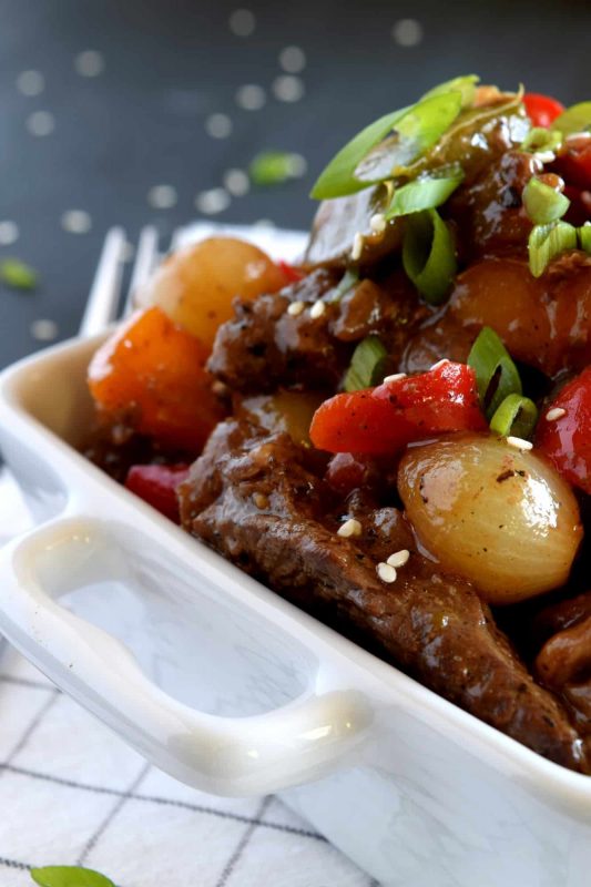 A classic recipe with simple, rustic ingredients; Pepper Steak with Pearl Onions is a family favourite! Loaded with beef, peppers, and onions, and all tossed in an easy gravy, this dish is cheap, but super impressive!