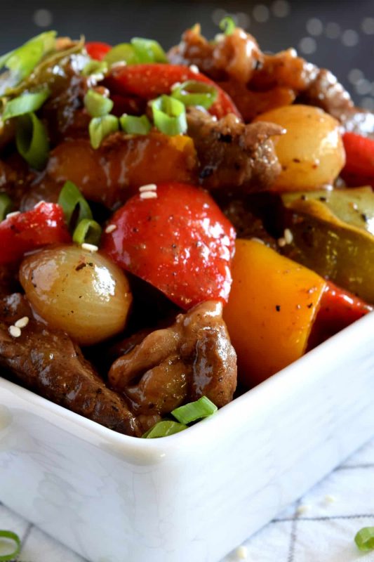 Pepper Steak with Pearl Onions
