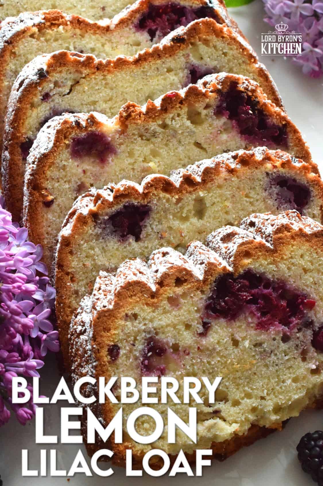 A super moist loaf prepared with fresh blackberries, lemon juice and zest, and hand-picked lilac petals. Not only is this Blackberry Lemon Lilac Loaf delicious and pretty, it is also quite fragrant! If you are fond of the smell of lilacs in early summer, this dessert is sure to please!