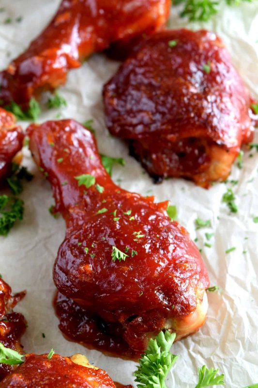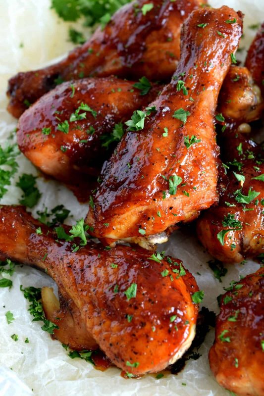 Are you seeing a pattern? I love simple chicken drumstick recipes. Here’s a four ingredient recipe that results in a very moist and tender drumstick, but is super sweet and super sticky. This is my favourite summer picnic chicken, because it pairs so well with potato salad and coleslaw. But, don’t wait for summer; Sweet and Sticky Four Ingredient Chicken Drumsticks can be enjoyed any time of the year!