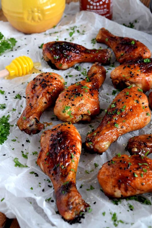First, how about a little sweet and a little heat with my Sticky Honey Sriracha Chicken Drumsticks? I love these and would rank them in my top five. So easy to make and packs so much flavour!