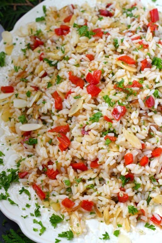 If you are preparing this dish ahead of time, allow it to cool completely before transferring to a food-safe container with a tight-fitting lid and refrigerate. To reheat, you may microwave in one-minute increments, stirring well between each increment. Alternatively, add the salad back to the skillet and reheat on medium-low until just warmed through.