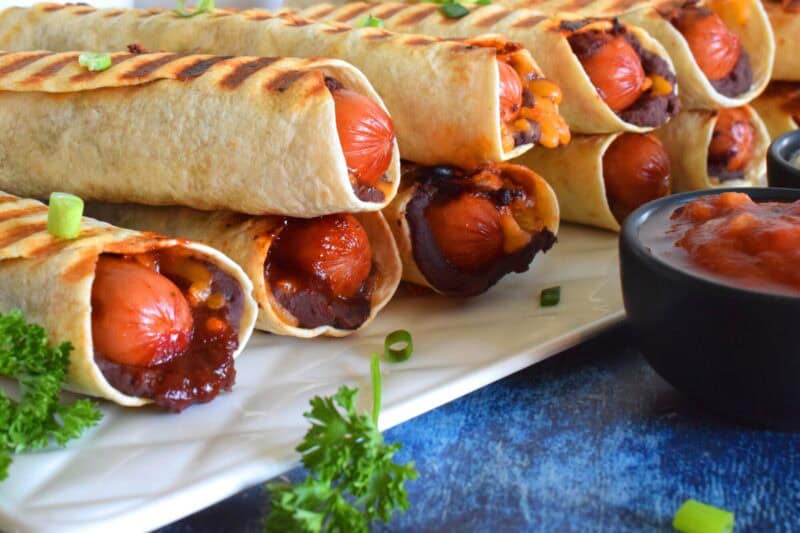 If you cannot decide whether you want a hot dog, a burrito, or a taquito for dinner, then you should just have all three in one! Bean and Cheese Hotdog Taquitos are prepared by rolling a tortilla with refried black beans, shredded cheese, and a hotdog. Grill until golden and crispy. Serve with your favourite dippers!