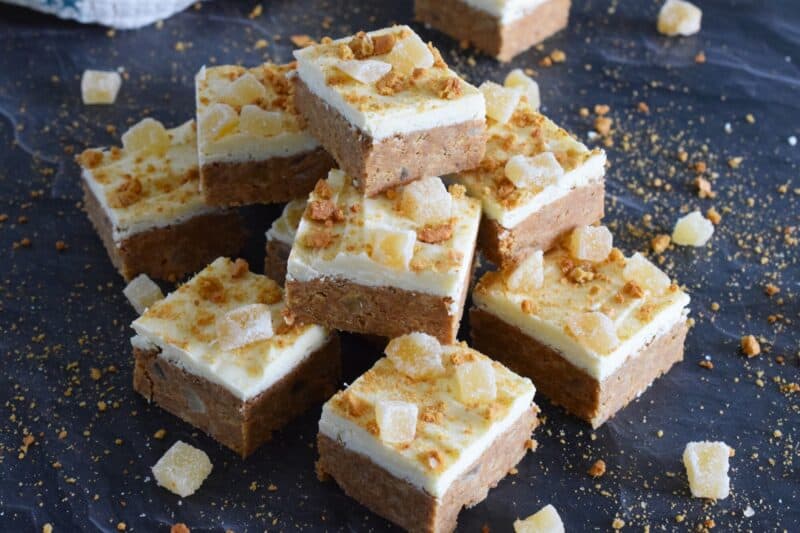 Double the ginger and double the flavour! These Candied Ginger Squares are prepared with both candied ginger and gingersnap cookies with a base that consists of sweetened condensed milk and melted white chocolate. These squares have a slightly warming flavour which just screams Christmas!