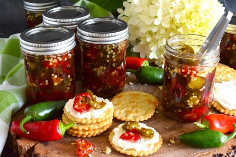 One of the first, and probably the most obvious way to use these Canned Cowboy Candy is on a charcuterie board. The sweet, vinegary, spiciness of them pairs so well with cheese and meats! And, I love to pair them with salty prosciutto! Here are some other ways to use up your candied jalapenos!