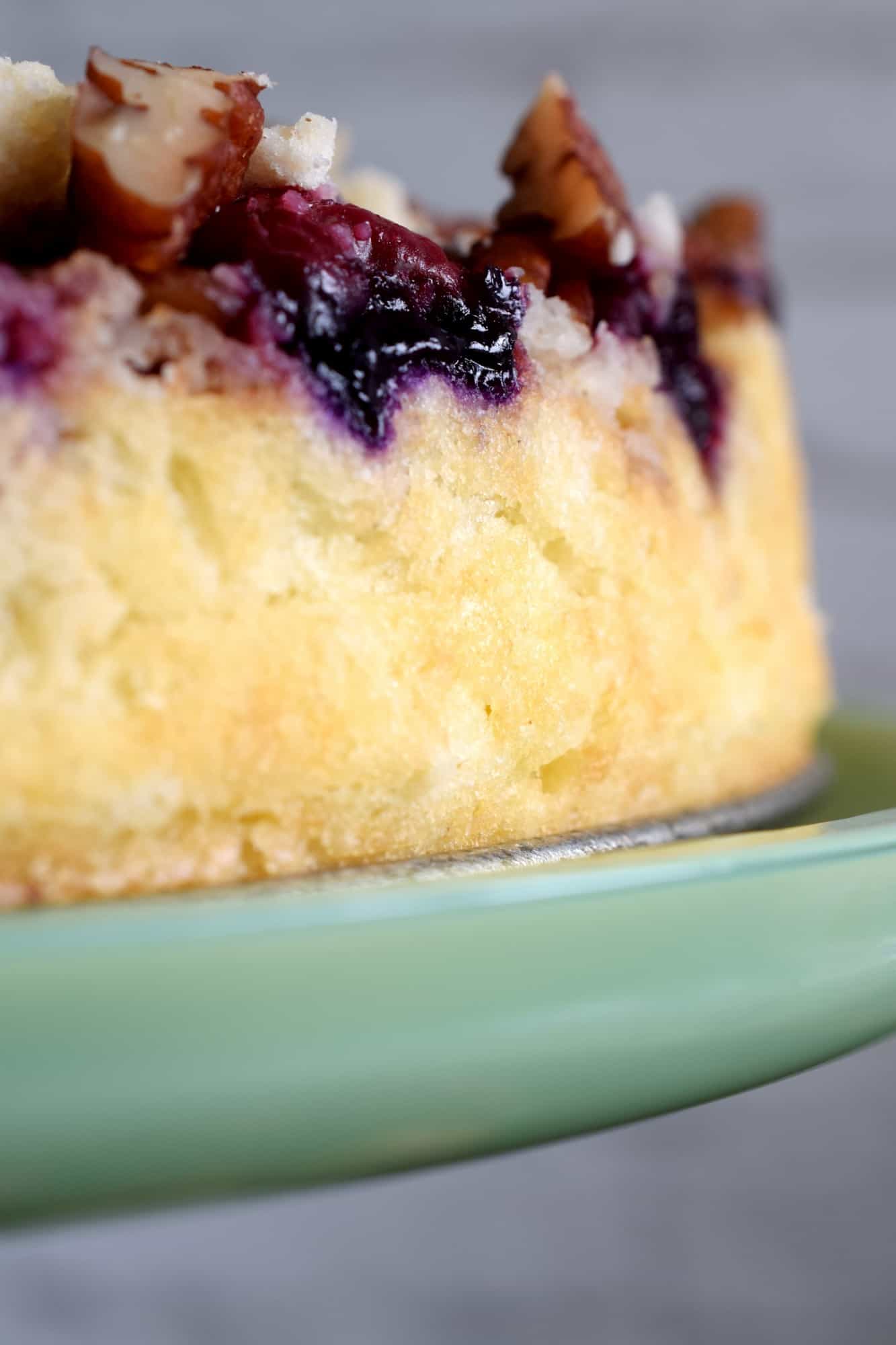 In terms of baking, you can bake this cake in a 10″ spring form pan like I did, or you can use a 9 x 13″ baking dish. I used the spring form pan so that I could place the humble cake on a pretty cake stand; not that the cake needed anything to help it be pretty, but because I love cake stands!
