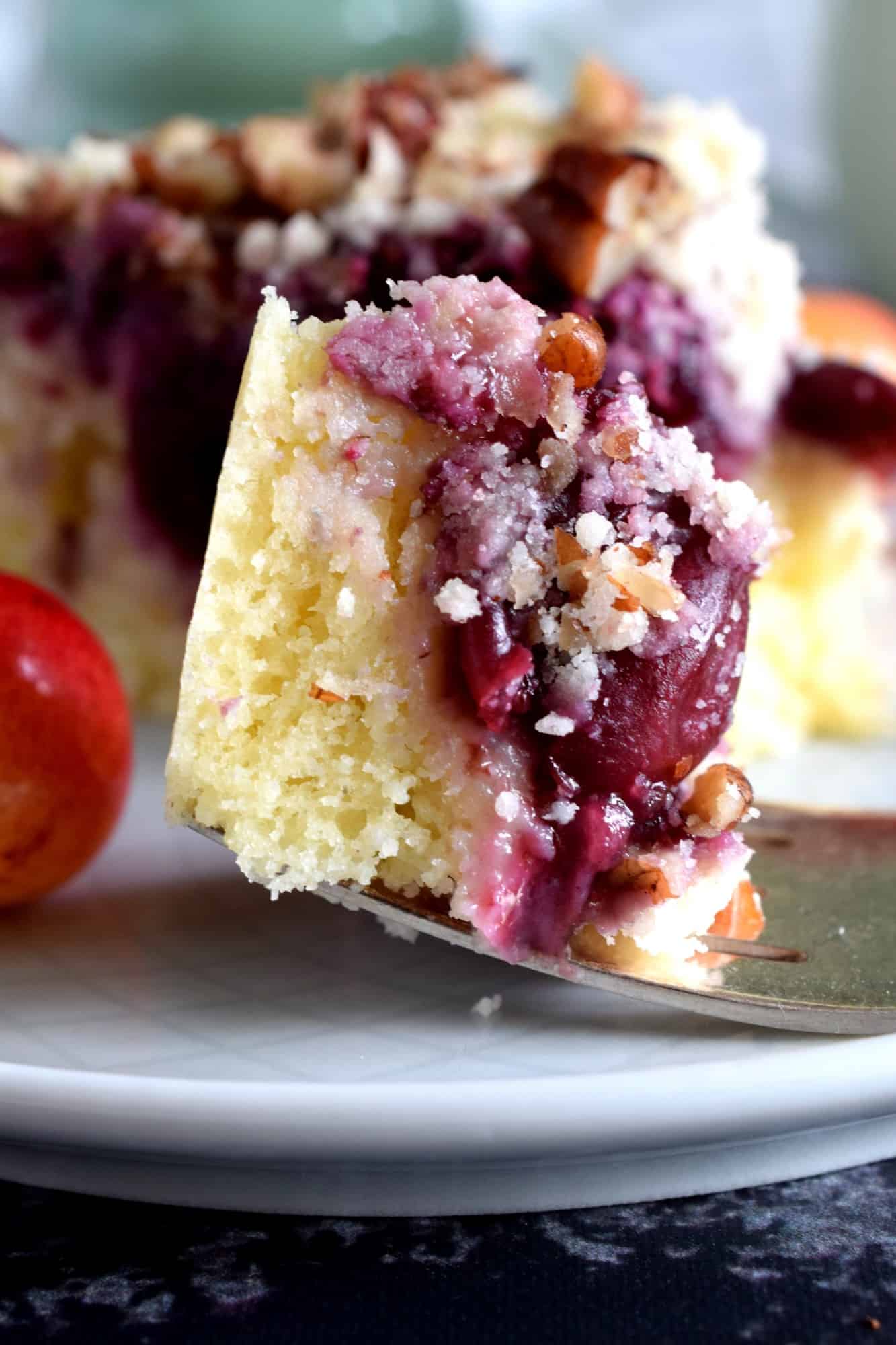 Cherry cake, especially the black forest type, or cherry pie, has to be close to everyone’s favourite type of dessert. I think anything dessert-wise with cherries as the star is the ultimate early summer dessert. And, if you already have cherry pie filling on hand, you can use it up in various ways, like this Cherry Cake with a Pecan Crumble Topping, for example.