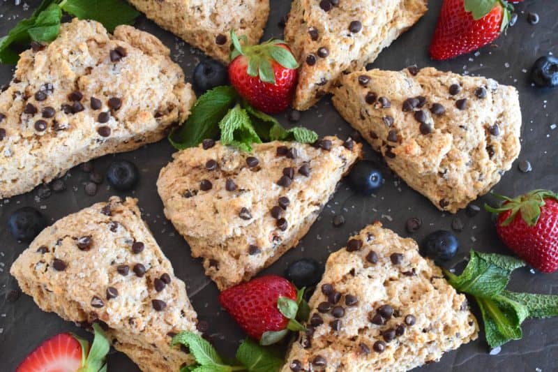 A scone for both the little kids in your life, and the adults that live their lives like a kid, Chocolate Chip Scones are sweeter than regular scones. With a good splash of vanilla, loads of milk chocolate chips, and a sprinkling of coarse sugar on top, these scones are an absolute treat.