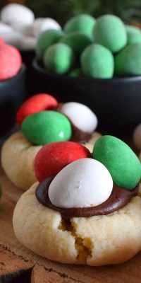 These are made using a classic thumbprint cookie dough, which is stuffed with a creamy chocolate frosting, and topped with mini eggs. There’s no doubt that Christmas Mini Egg Thumbprint Cookies will be the first cookie to disappear from your cookie platter!