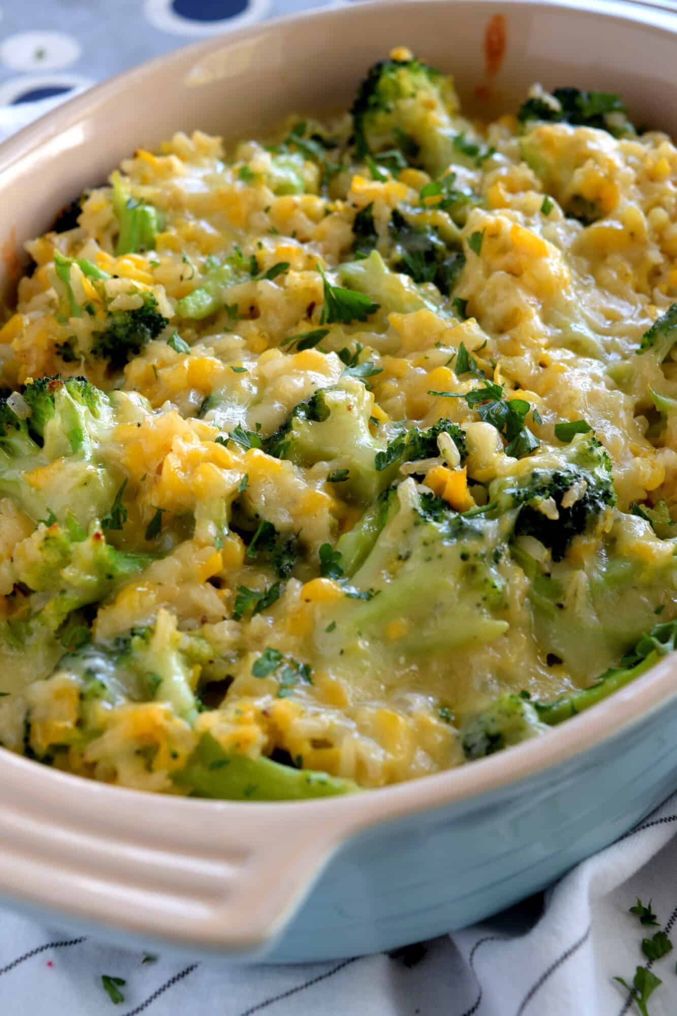 So, in an effort to prepare some meals on Sunday for a busy work week, I opted for this Corn and Broccoli Brown Rice Casserole. I love to make a few meals on Sunday afternoons that will keep well in the refrigerator and can easily get us through the week. A casserole is the perfect dish to reheat a day or two later.