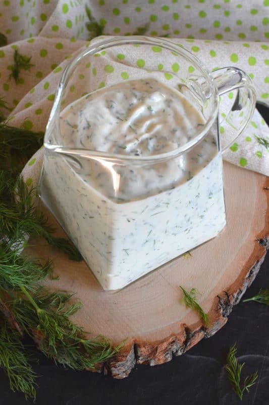 I love a quick and easy sauce recipe. I love it even more so when I don’t need to cook it! Besides the excellent taste, that’s what makes this sauce so good. It can be the answer to so many mains and sides. I’ll get into that a bit later, but first, let’s talk about fresh versus dried dill. They are not the same!