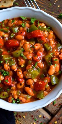 But, as I said, there’s no shame in using store-bought canned beans. In fact, I highly encourage you all to have a well-stocked pantry which includes canned beans. They’re good for you, they’re inexpensive, and you can add them to many recipes for heartiness and protein. Now, let’s talk about these Dressed Up Canned Beans in Tomato Sauce!