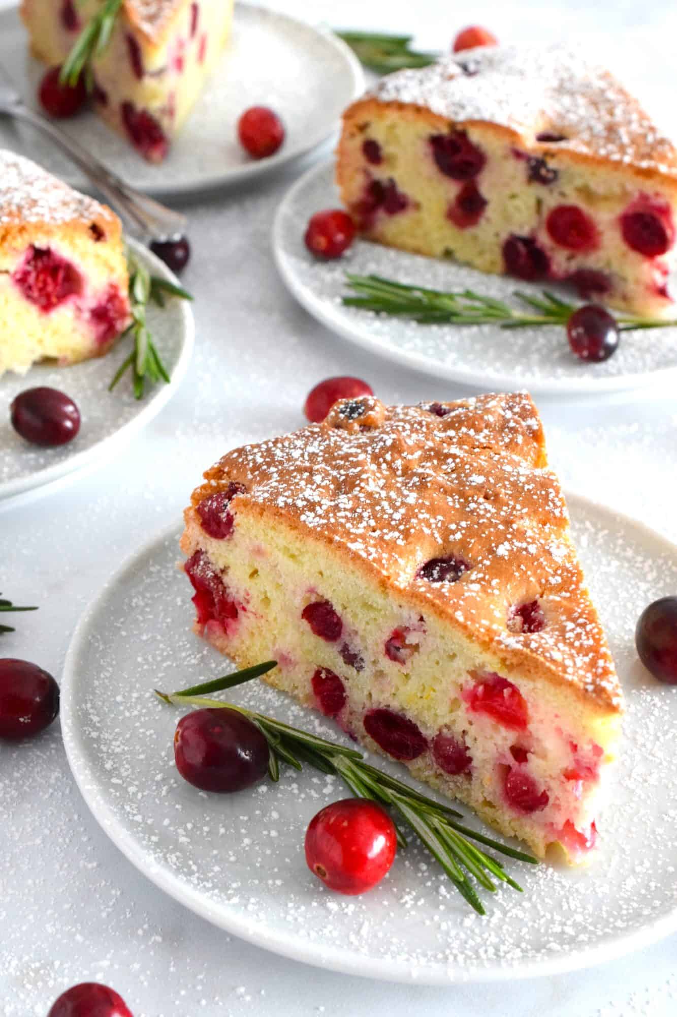 The tartness of cranberries is balanced perfectly with just the right amount of sweetness in this Fresh Cranberry Cake! You may be tempted to cut yourself a big slice and top it with ice cream or whipped cream, but, don’t overdo it! Let the flavours of this cake shine through, don’t mask or muddle it with toppings; a dusting of sugar will do just fine!
