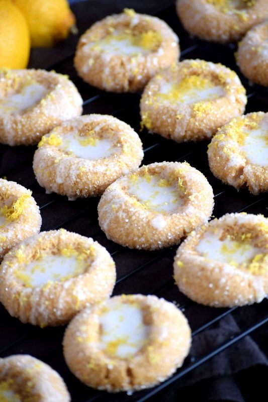 - Whisk together the confectioner's sugar and lemon juice. Use a teaspoon to lightly drizzle the glaze over the top of the cookies. The dimple in each cookie will likely collect the glaze, so don't over fill it.