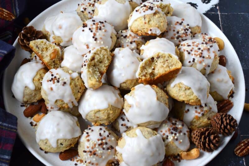 Alert the Mouse King because these Glazed Nutcracker Cookies are prepared with a copious amount of chopped nuts! Using salted nuts balances out the sweetness of the delicate, soft cookie and provides ample crunch and texture. Make extra and share them with your friends – just don’t snack on them at the ballet!