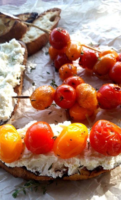 If you can’t find yellow tomatoes, don’t worry about it. Classic red will be just a pretty and will most certainly taste as good. Happy grilling!