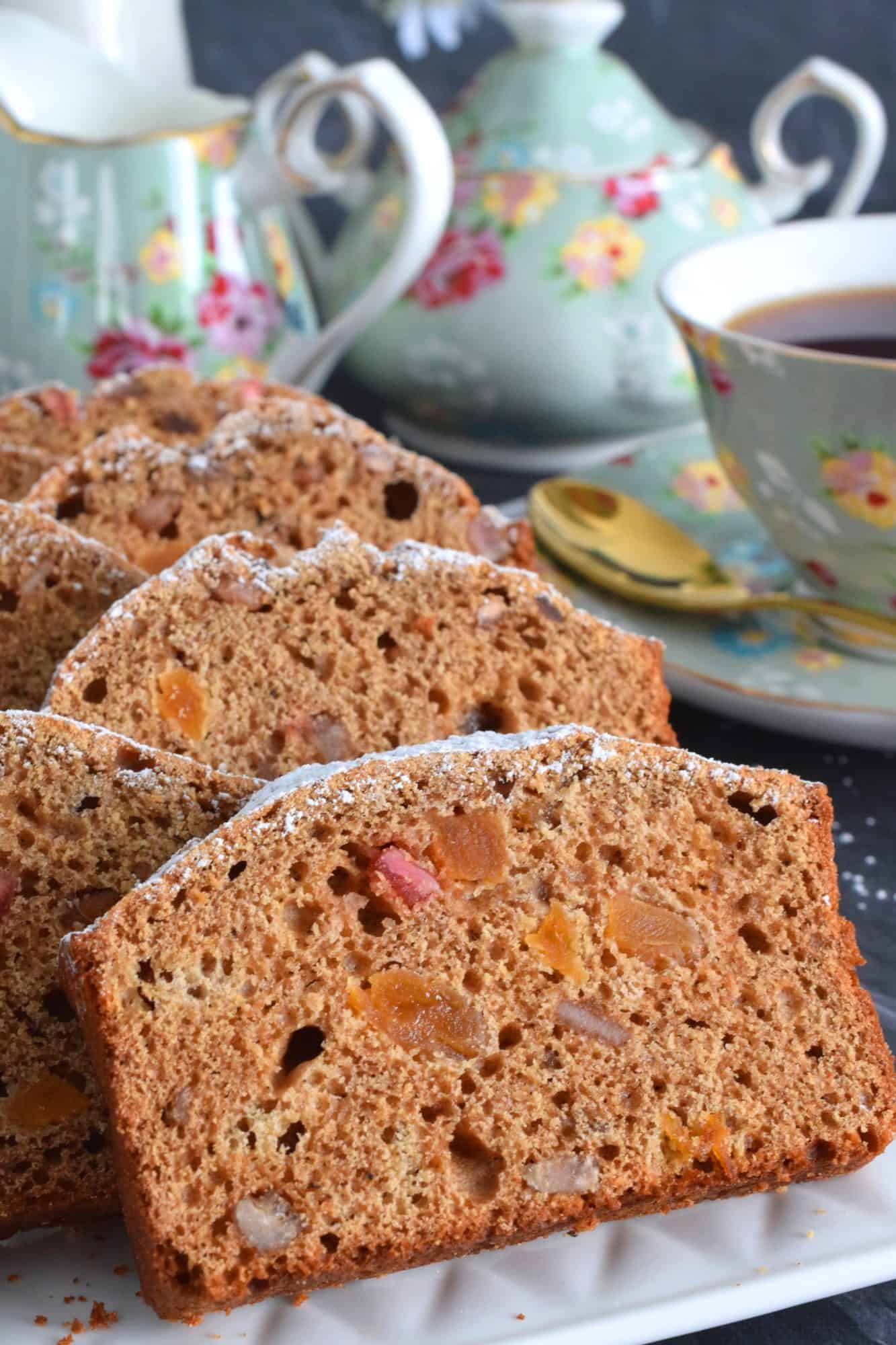 There are quite a number of ways you can approach this loaf. For example, the fruit you choose to use in your loaf can vary greatly. It’s a very forgiving recipe in those terms. Use what you like – raisins, currants, ginger, cherries, peels, citron, dates, apricots, etc. The only steadfast rule is that you must apply the right measurements, otherwise, your loaf may be too dry, or it will never bake all the way through. More on that later!