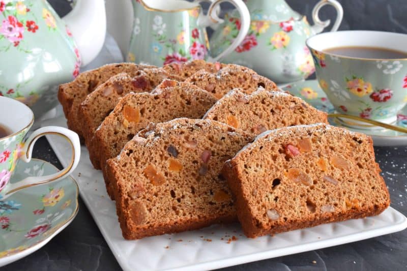 Best served with tea as an afternoon snack, Irish Barmbrack Loaf is prepared with dried fruit that has been soaked in strong, hot tea. Super moist and flavourful, this loaf is inspired by traditional barmbrack bread.