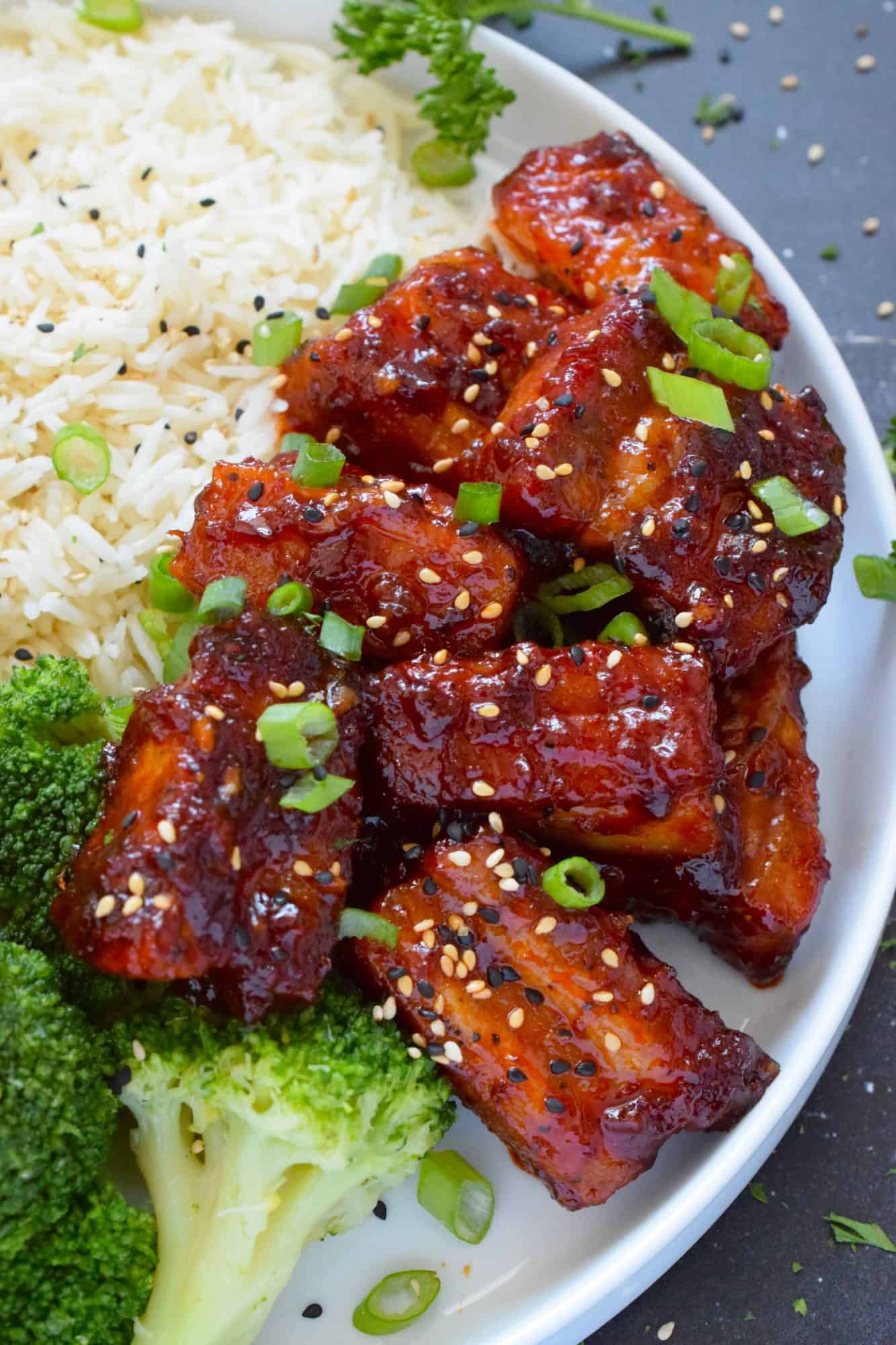 As you can see, I’m serving mine with steamed broccoli and rice. However, if you want something more flavourful, you could certainly consider these bolder sides. Try my Sesame Bean Sprouts Salad. It is a crunchy and delicious side that can be prepared in less than 10 minutes! Blanched sprouts are tossed in a savoury, earthy, salty sauce made with soy sauce, sesame oil, minced garlic, and lots of fresh green onions.