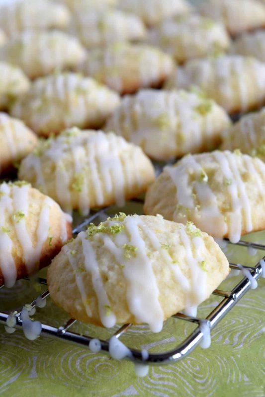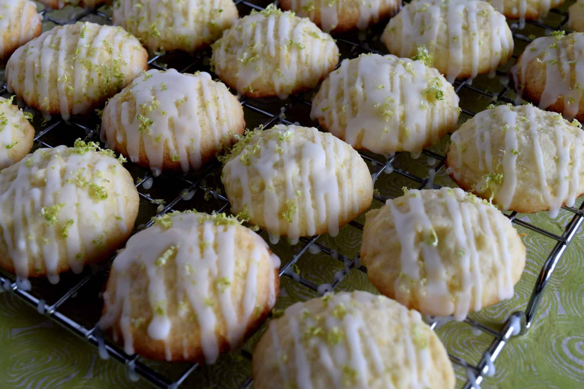 - Drizzle the icing onto the cooled cookies. Sprinkle the remaining lime zest over top before icing hardens.