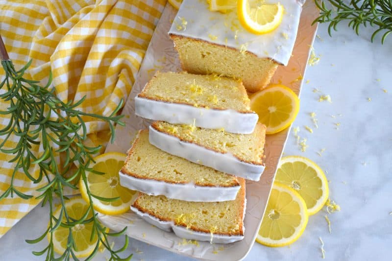 Whisk together the confectioner’s sugar and lemon juice until smooth and creamy. Drizzle over the cooled loaf. Garnish and serve.