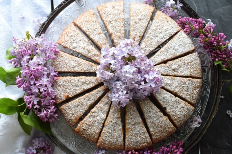 The old adage that simple is better certainly applies in the case of this Lilac Coffee Cake. A light dusting of confectioner’s sugar and some gently placed lilac branches is all this moist and spongy cake needs to look superb! A perfect early summer treat, served with a tea or coffee – it really doesn’t get any better!