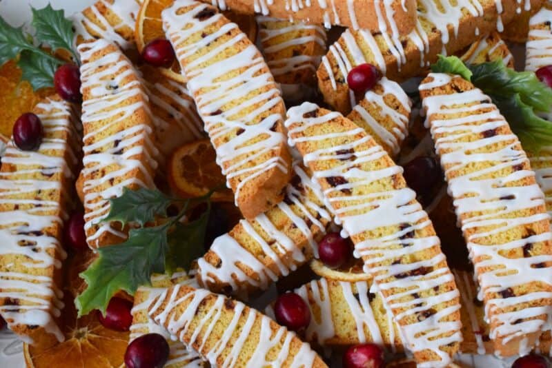Remove from oven and allow to cool on the baking sheet for 3-5 minutes. Transfer to wire cooling rack to finish cooling completely. When completely cooled, whisk the confectioner’s sugar and orange juice together until smooth. Drizzle over the biscotti and allow the glaze to dry and harden. Package biscotti for gift-giving or pile into a food-safe container. Leave at room temperature, or freeze until needed for up to 3 months.