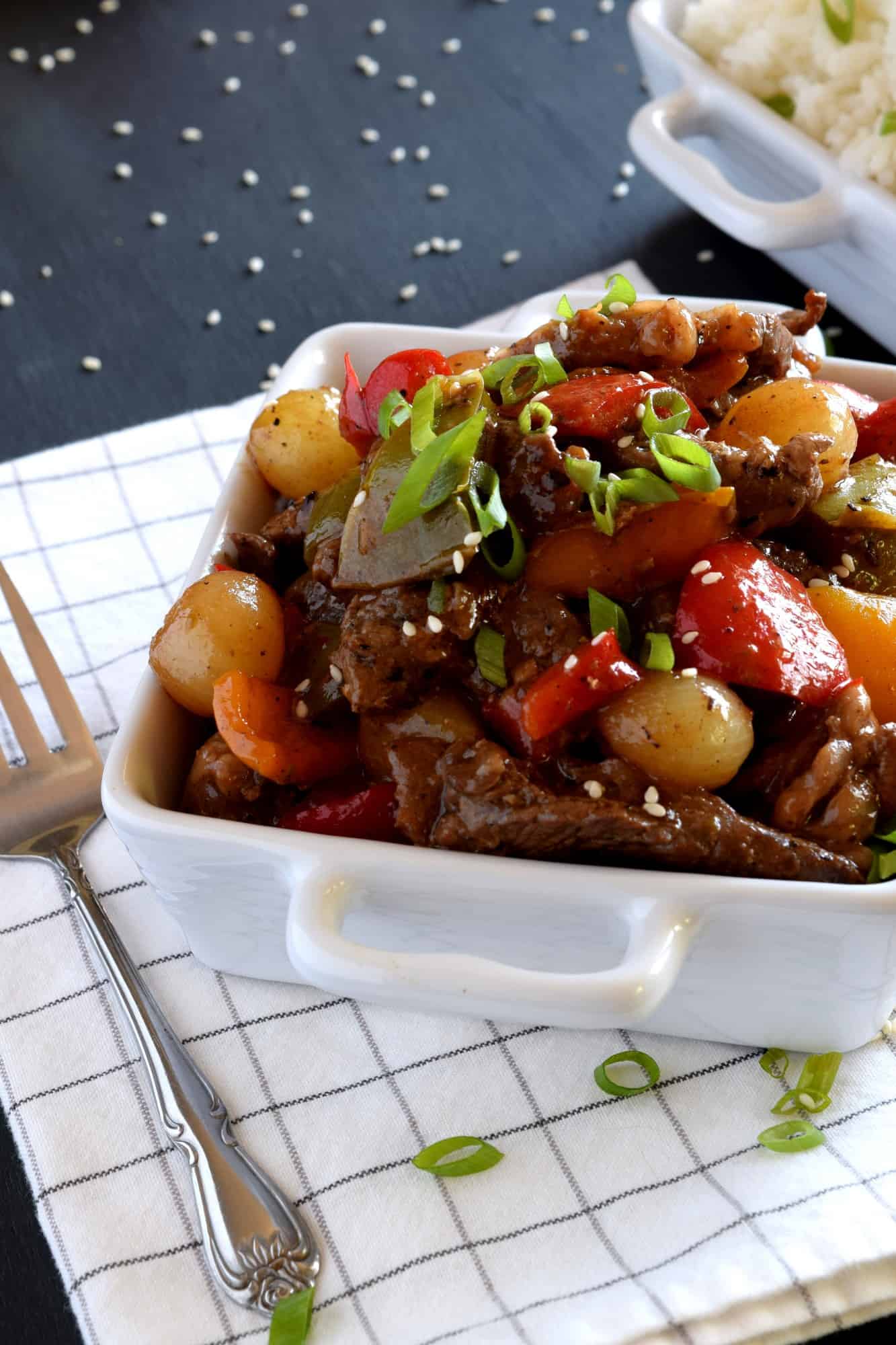 Pepper Steak with Pearl Onions