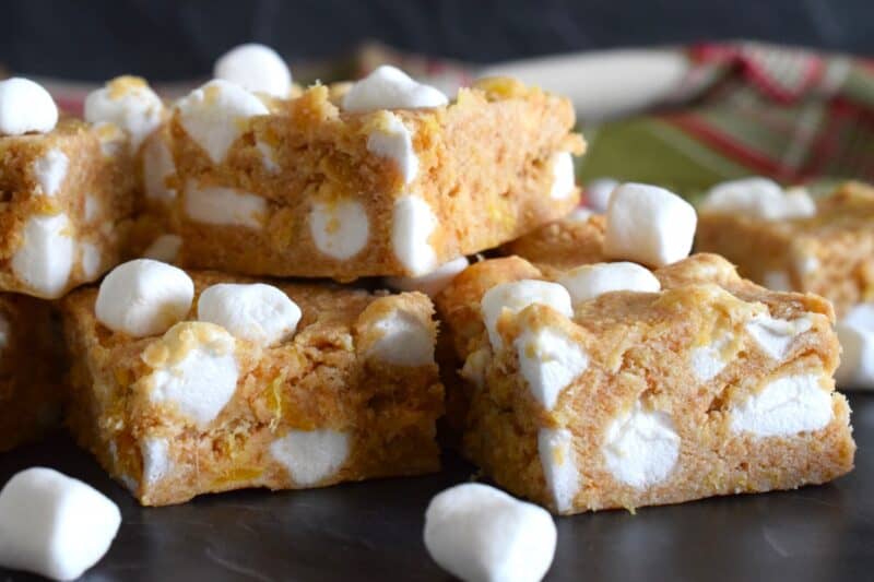 This one might seem a bit strange when it comes to being considered a Christmastime treat. But, it’s not strange in the home of most Newfoundlanders. My mom used to make pineapple-flavoured treats for Christmas every year. When it came to a no-bake confection – especially one that used crushed cookies and canned crushed pineapple – my mother was totally on board, so I know she would have loved these Pineapple Marshmallow Squares!