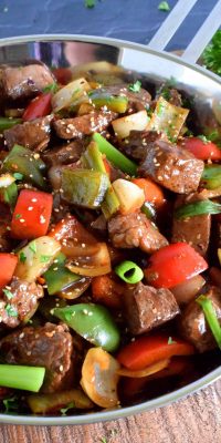 To be perfectly honest, you can use just about any cut of beef you want for this dish. Here’s how I decide. If I’m going to take the time to sear all of the sides, and if I want a dish to be quick and easy, I’ll choose a cut of beef that has a lot of fat or marbling. This helps to keep the beef tender and moist during the frying process.