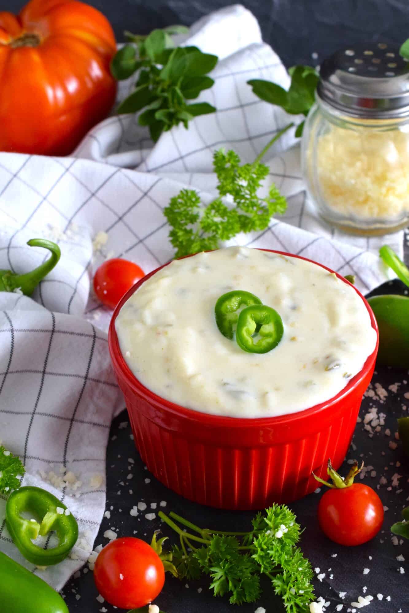 A sweet and spicy garlicky dipping sauce that will elevate any pizza flavour, this Sweet Jalapeno Pizza Dip also works very well with breadsticks, chicken wings, and more! It takes only a few minutes to make this dip and will keep safely in your fridge for over a week. So, let’s revamp your favourite dippers into a glorious, tantalizing, taste adventure!