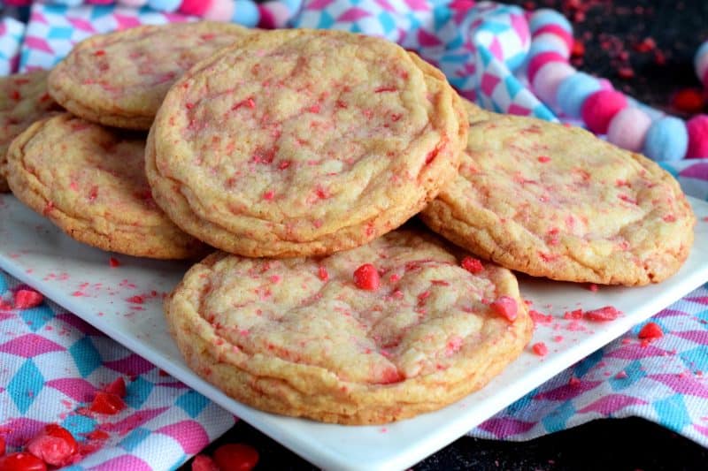 Oh how I love crispy crunchy buttery cookies! I bet the cinnamon candies are delicious in these cookies, and they are perfect for Valentine’s Day. We have a snow day in Wisconsin today and these are perfect for my baking list!