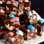 While the fudge is still hot, press the remaining Robin Eggs into the top of the fudge.
