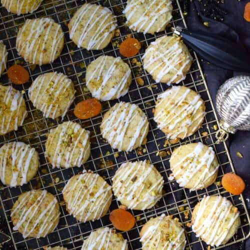 Soft and moist Apricot and Pistachio Cookies are a great addition to any holiday cookie platter! Prepared with a quick and easy cookie dough, these are packed with the chewiness of chopped dried apricots and the crunchiness of shelled pistachios!