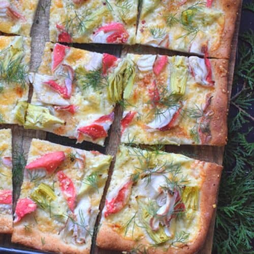 Cheesy, garlicky, and spicy are three words one could use to describe this Artichoke and Crab Flatbread. Easy to prepare, but authentically delicious, this appetizer will be talked about long after the holidays are over, which is why this recipe makes two!