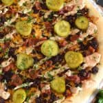 Bacon Cheeseburger Pizza combines the best of two fast food worlds into one! Prepared with ground beef, cheese, pickles, and a copycat burger sauce. Who could resist?