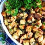 Say good by to mushy stuffing! Baguette Stuffing with Swiss Chard and Caramelized Onions is chunky, hearty, and vegetarian too! This stuffing is great for any occasion or feast!