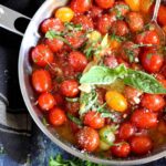 The Barefoot Contessa's Herb and Garlic Tomatoes are the perfect recipe to use up your bounty of summer ripe tomatoes. This is a simple recipe with intense garlic and basil flavour; savour these blistered tomatoes tossed with pasta, or on top of grilled crostini!
