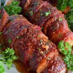 Moist and tender chicken breasts wrapped in beef bacon, which is flavoured with brown sugar, paprika, garlic, and onion. Perfectly baked until the bacon has browned and caramelized, this main is easy to prepare and absolutely delicious. There's just one problem - there never seems to be enough!