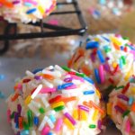 Portion the cookie dough into one tablespoon sizes. Roll into balls and then roll into the remaining sprinkles.