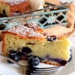 Add 1 1/2 cups blueberries and gently fold them into the batter using a rubber spatula. Pour the cake batter into the prepared cake pan. Top the cake with the rest of the blueberries and bake for 40 minutes, or until a toothpick inserted into the middle of the cake comes out clean.