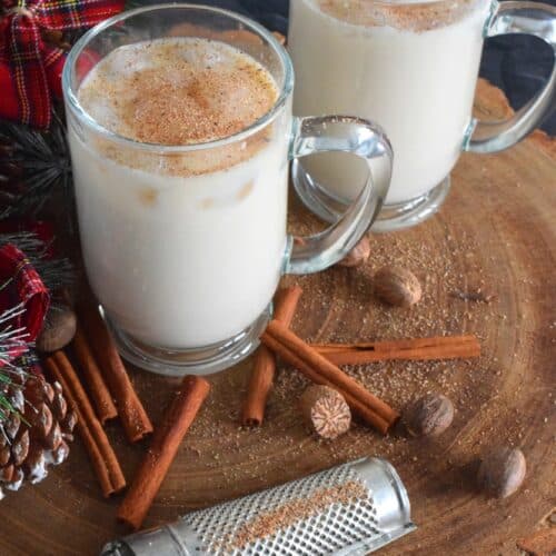 Quick and easy, this Bourbon Spiked Eggnog cocktail uses store-bought and ready eggnog and combines it with a good splash of bourbon and lots of freshly grated nutmeg. It's yummy!