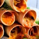 Great for guests or a quiet Saturday morning breakfast with your family. All of the prep can be done ahead of time too! These sausage and egg filled taquitos are perfectly crispy and cheesy! Use ground sausage meat or a whole sausage!