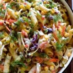 Buttermilk Dill Ranch Pasta Salad has a creamy homemade dressing, perfectly cooked pasta, loads of freshly chopped veggies, and enough flavour to knock your socks off!