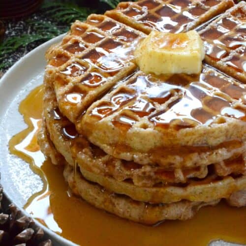 If Christmas had a flavour, it would be gingerbread, so let's start the day off right with these light and airy Buttermilk Gingerbread Waffles! These super easy-to-prepare homemade waffles are piled high and generously dressed with warm syrup and a pat of butter.