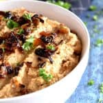 Of all the varieties of hummus, Caramelized Onion Hummus is my favourite. It works great with veggies, but also as a spread with grilled crostini, crackers, or rice cakes. This hummus is completely versatile, because it's both savoury and sweet at the same time!