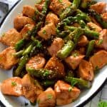 Seasoned boneless and skinless chicken breast pieces are pan-fried with fresh asparagus and in a quick, homemade teriyaki sauce. This is a healthy dinner that is both easy and delicious!