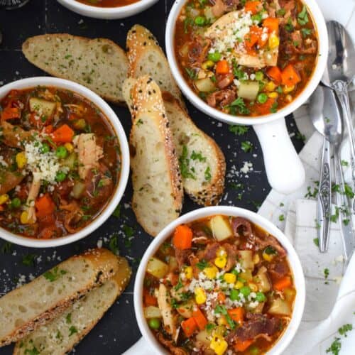 The bleak gloom that comes with February can be pushed to one side - at least temporarily! - with a hearty, filling, meaty soup. I'm talking about this Chicken and Bacon Soup! It's so comforting and cozy and will certainly help to eliminate those winter chills and blues!