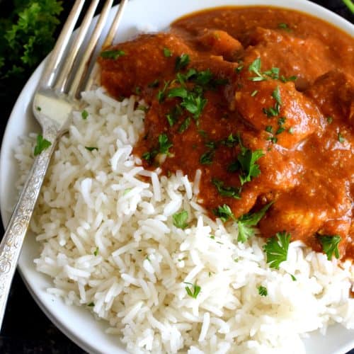 Tender chicken breast pieces, marinated in yogurt and spices, and simmered in a thick, luscious curry sauce. Why go out for Indian food when you can make Chicken Tikka Masala at home? Going out is so last year, anyway!