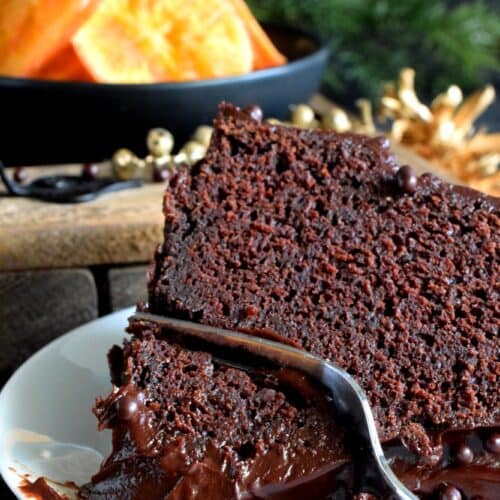 Nutritional information does not include the chocolate orange wedges.Whenever baking a bundt cake, you should never fill the pan more than 3/4 full. This recipe makes a lot of batter, so unless you have a very large bundt pan, you will have batter leftover. A 12 cup bundt pan will work perfectly. The bundt pan in the photos is the Nordicware Vintage Star Bundt and is only 10 cups. I used the extra cake batter up by making a few cupcakes.